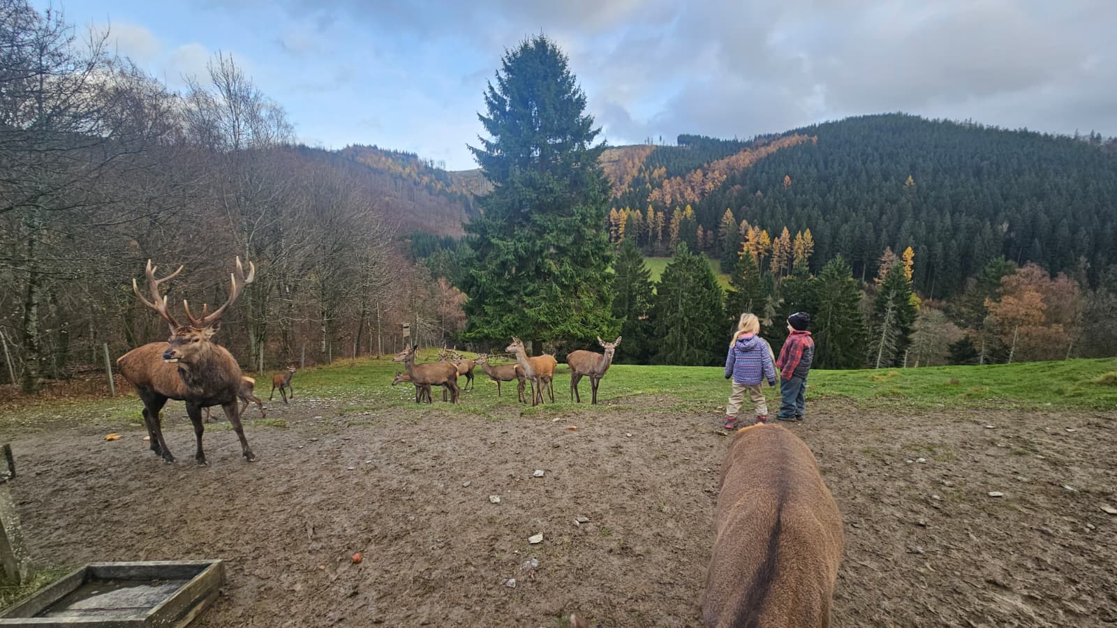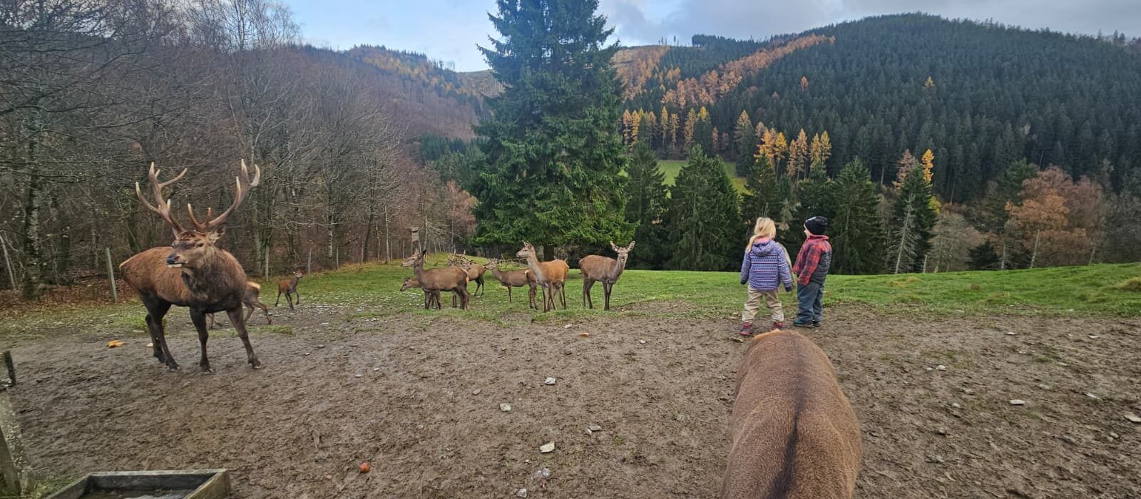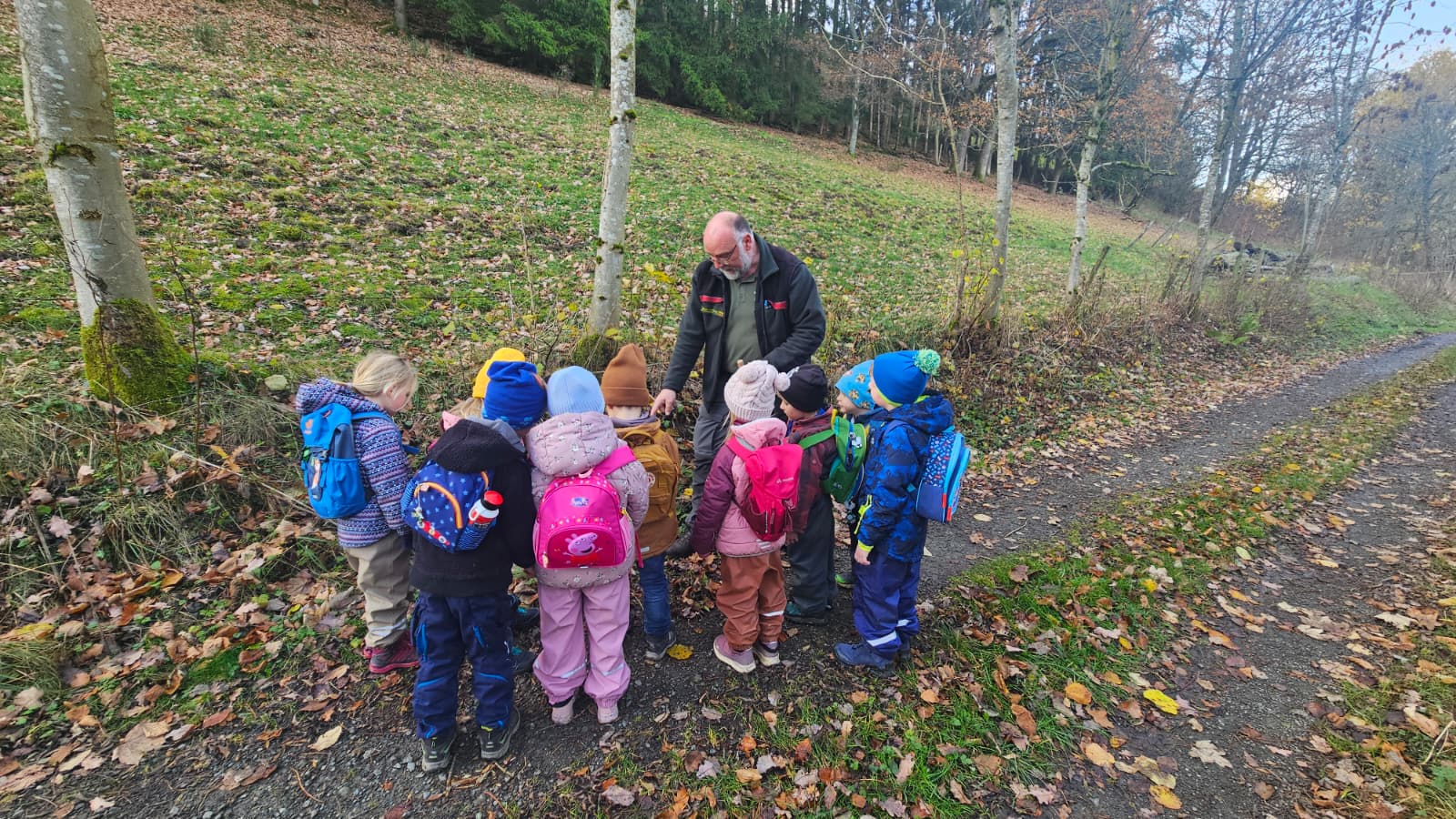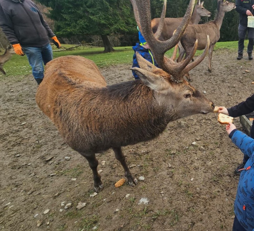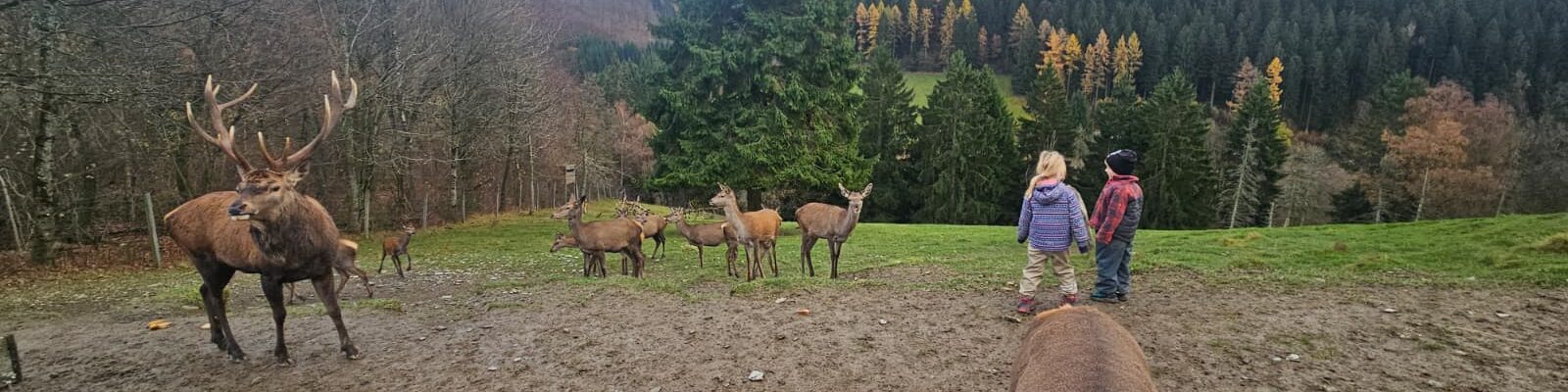 Wie jedes Jahr sind unsere Vorschulkinder wieder gemeinsam mit unserem Waldpädagogen Toni Vollmer und Werner Braune zum Rotwildgehege gelaufen. Hier konnten Sie viel interessantes über die Tiere lernen und sie aus nächster Nähe erleben. Besonders spannend war es das Geweih von Hirsch Max anzuschauen, das er im letzten Jahr abgeworfen hat. Beim Füttern mit Brot, Kastanien, Zuckerrüben und Heu konnten die Kinder viel helfen und haben gemerkt, dass die Zuckerrüben das Lieblingsfutter der Tiere sind.