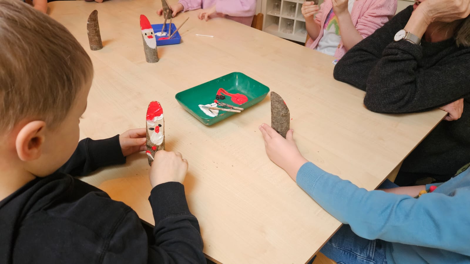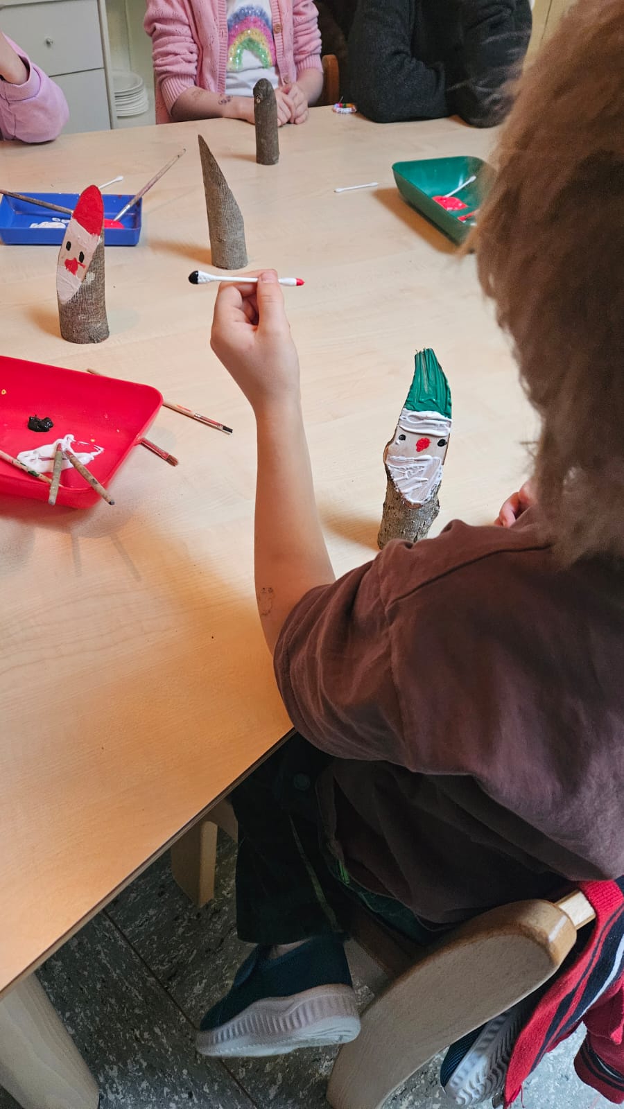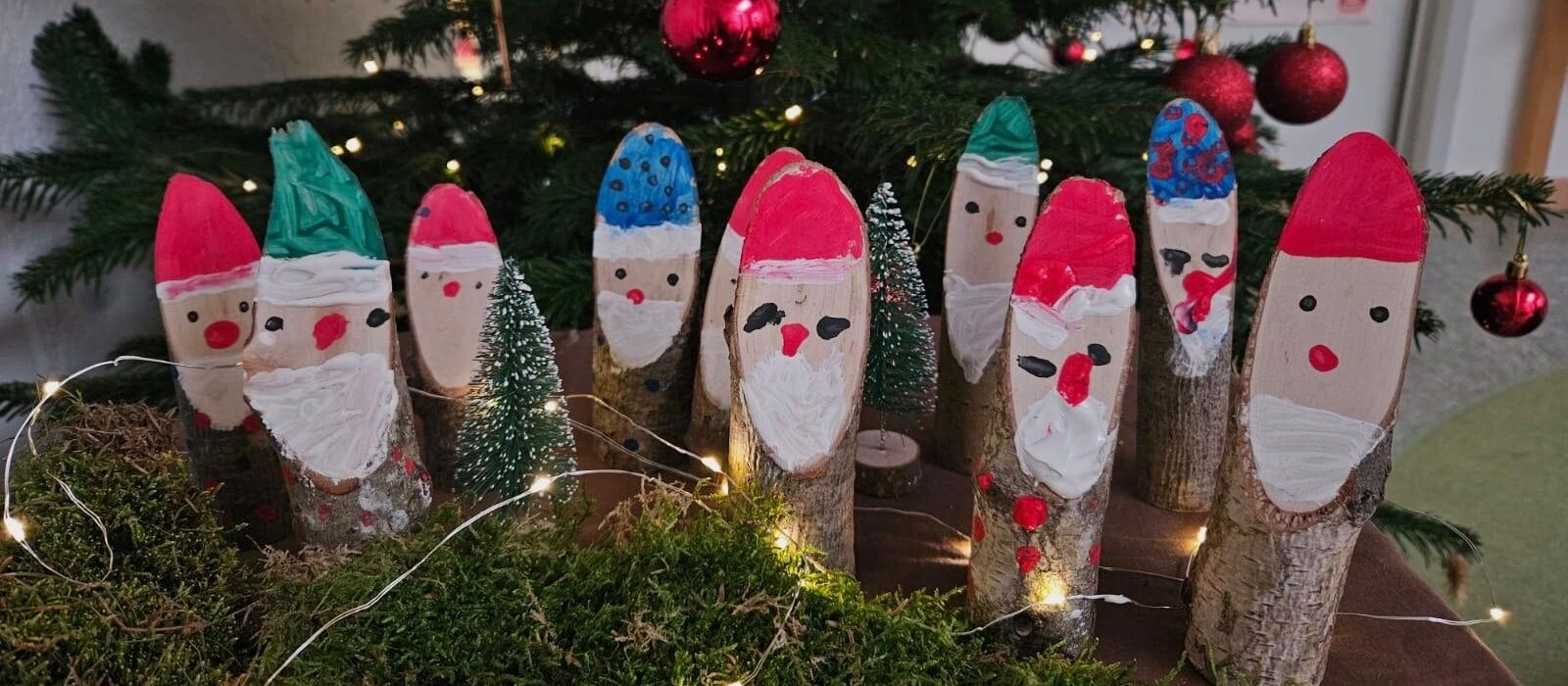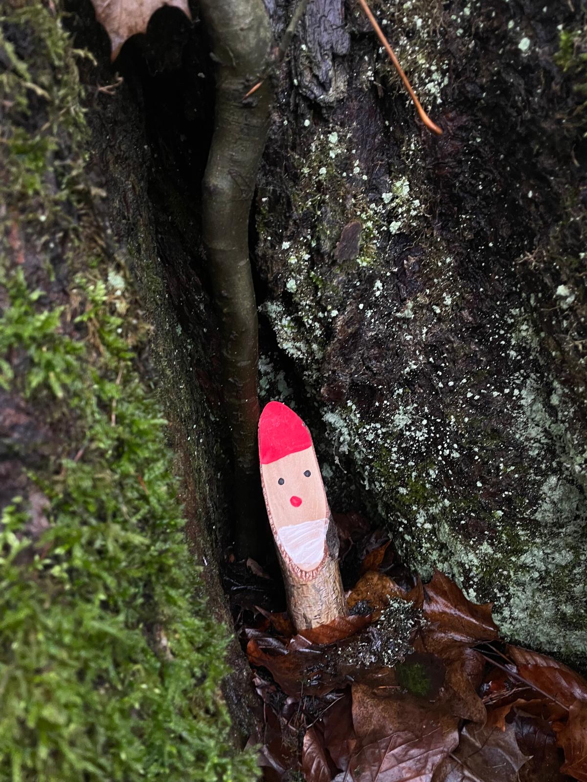 Die Vorschulkinder haben dieses Jahr in der Wald -AG kleine Wichtel bemalt und versteckt. Jeder ist eingeladen auf dem Weg vom Kindergarten bist zum Kindergartenwaldstück die 10 versteckten Weihnachtswichtel zu suchen.