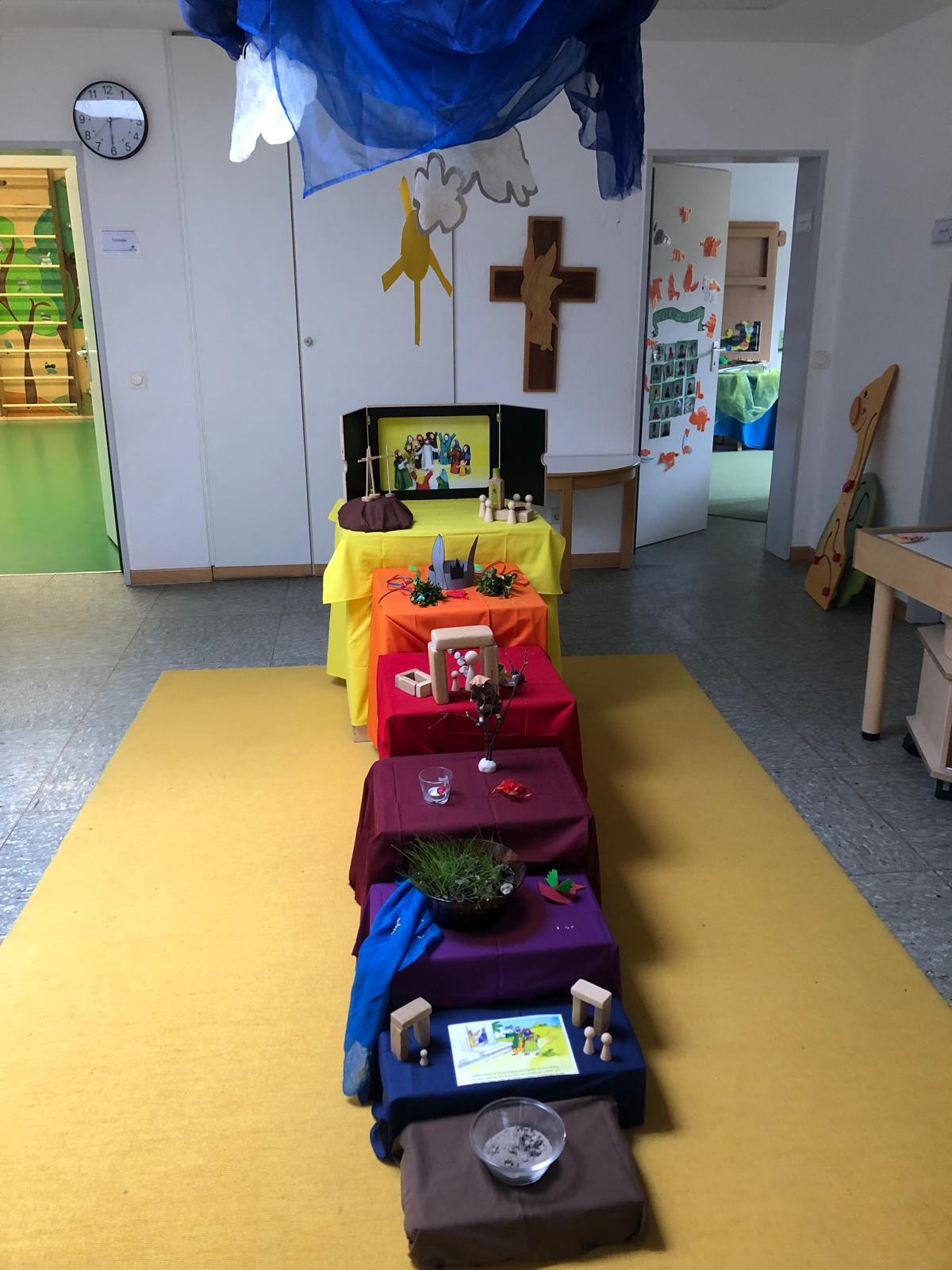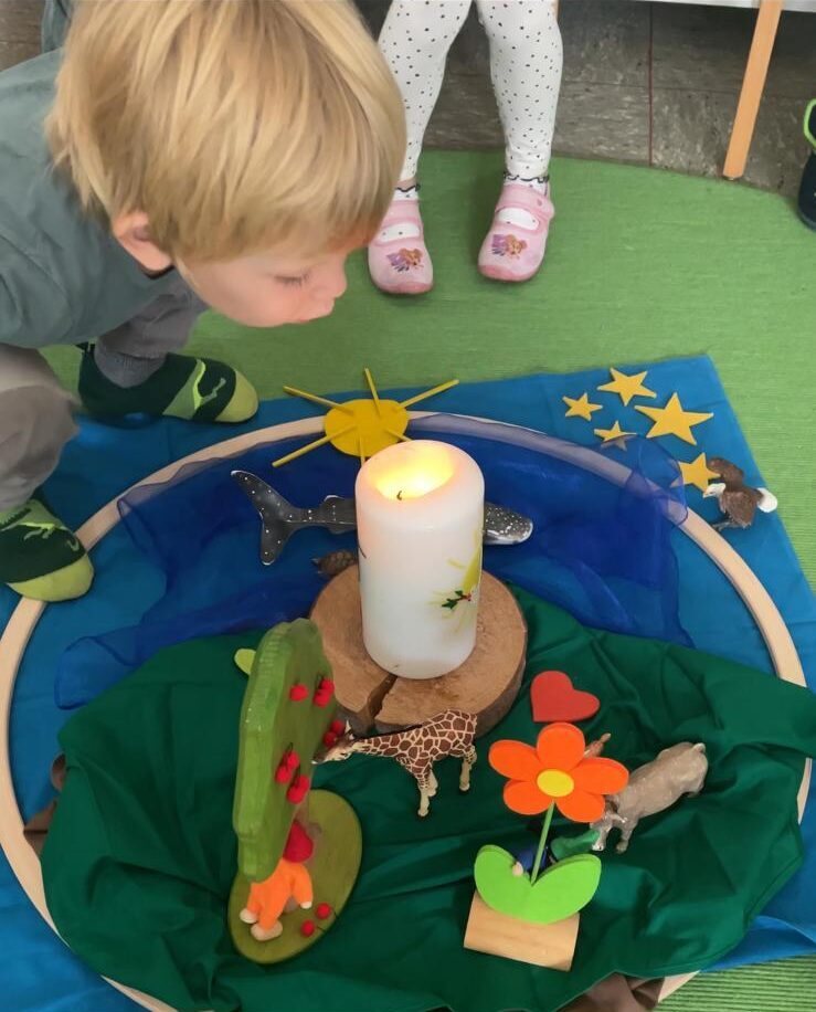 Als katholische Einrichtung ist es uns wichtig, den Kindern einen Raum zu eröffnen, in dem sie erste Glaubens- und Sinnfragen stellen und erleben dürfen. Im Vordergrund stehen dabei die Erfahrung von Vertrauen, Gemeinschaft und Geborgenheit.