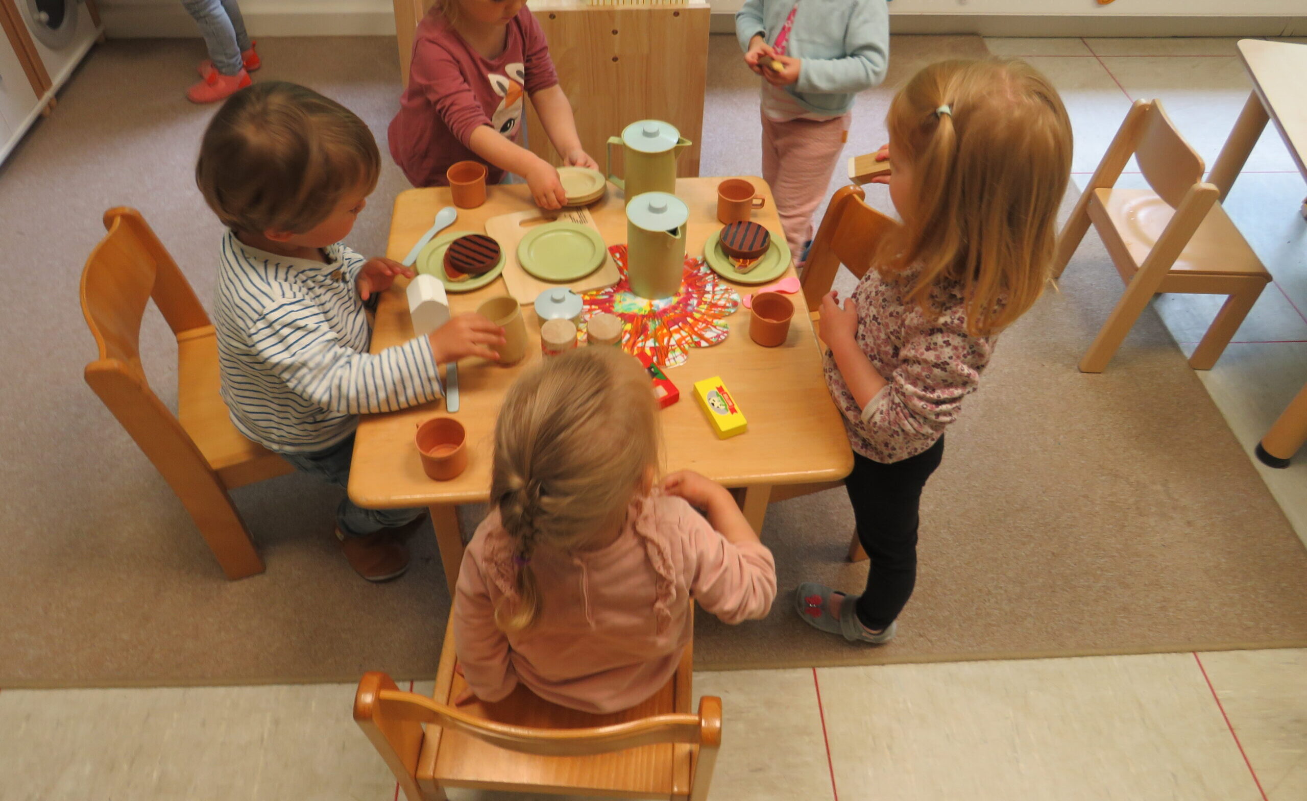 Wir arbeiten nach dem teiloffenen Konzept. Somit sind unsere Stammgruppen nach dem Morgenkreis auch Funktionsräume. Diese sind mit genügend Material ausgestattet, sodass das Spiel beliebig erweitert werden kann. Das Material ist vielfältig und bietet immer wieder neue Impulse zum Ausprobieren und Kombinieren.