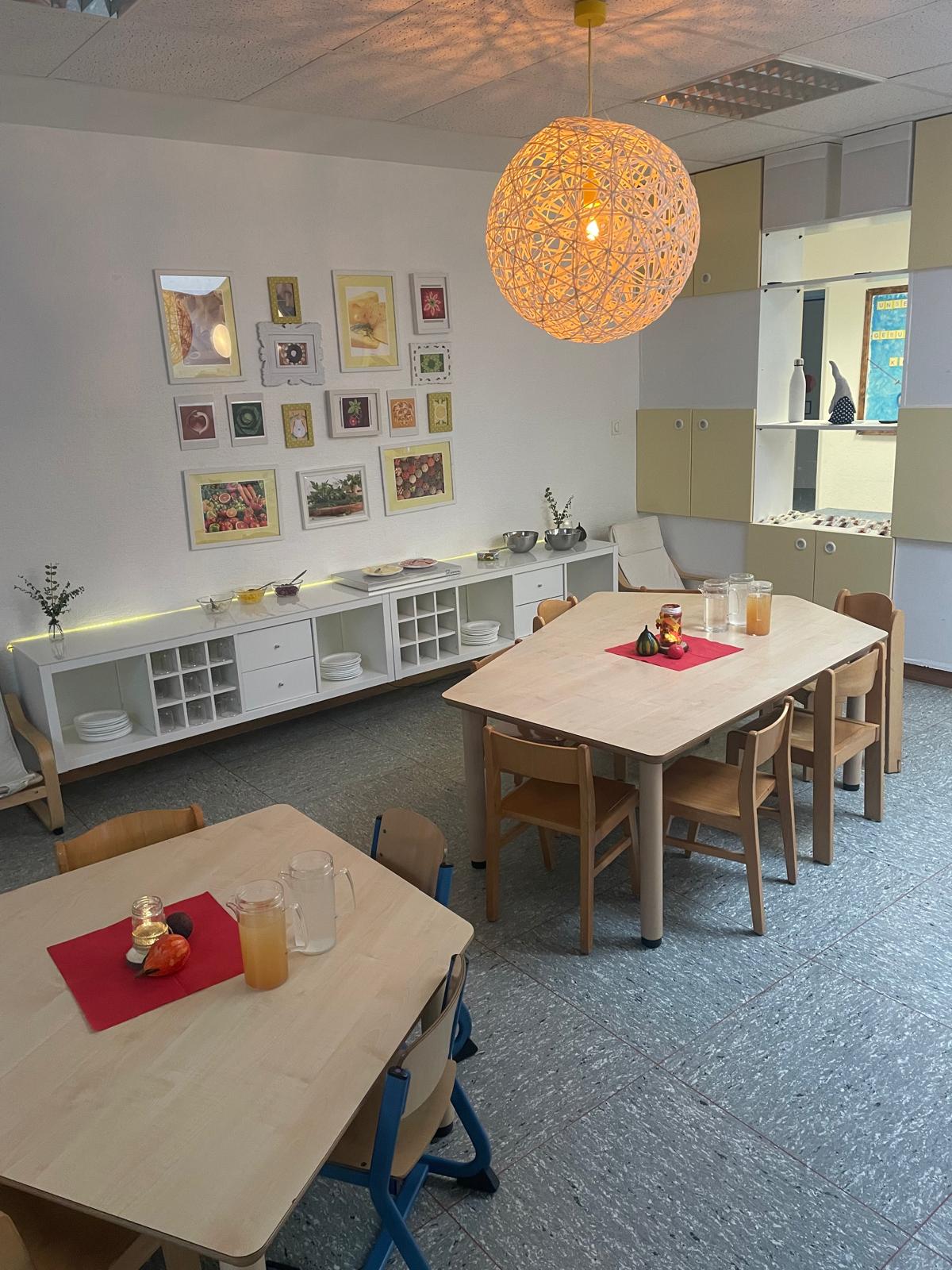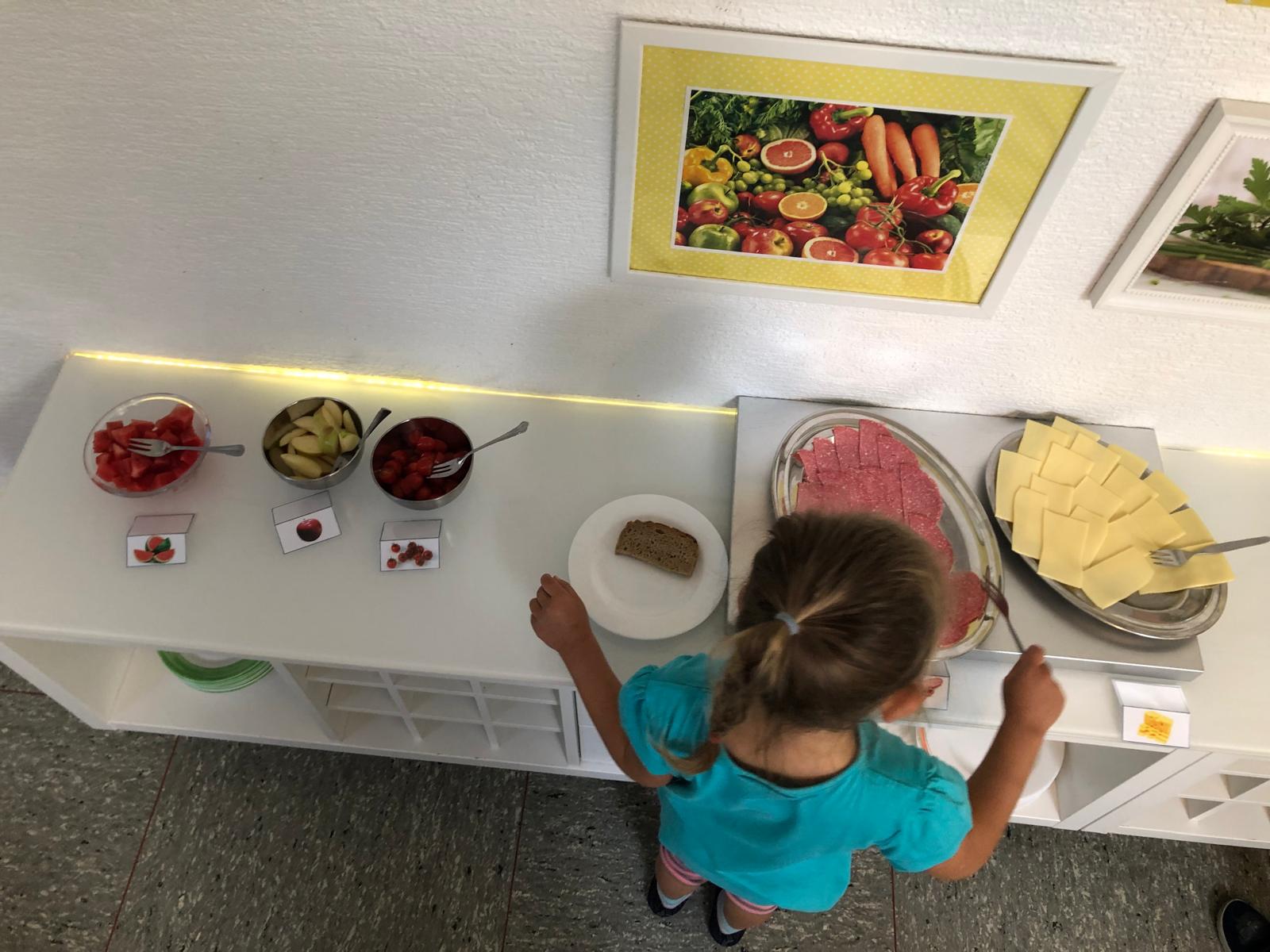 In unserem Frühstückscafé können die Kinder zwischen 9:30 und 10:30 Uhr in entspannter Atmosphäre frühstücken. Es gibt täglich ein frisches, regionales und gesundes Angebot mit Brot, Käse, Obst und Gemüse – ergänzt durch wechselnde Extras wie Joghurt, Müsli oder Eier. Besonders beliebt ist unser frisch gepresster Apfelsaft aus regionalen Äpfeln.